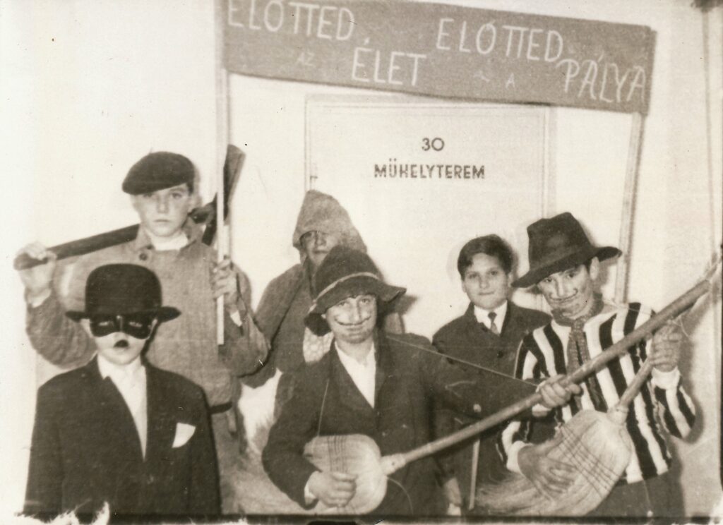 Klapka György Általános Iskola diákjai farsangi jelmezben 1965-ben.